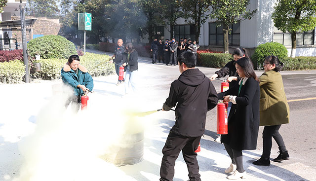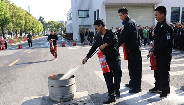 最后,安環辦負責人組織了員工現場實操使用滅火器,在滅火實戰演練中,組成六組隊員以比賽的形式進行干粉滅火器滅火,整場演練緊張有序,達到預期目的。