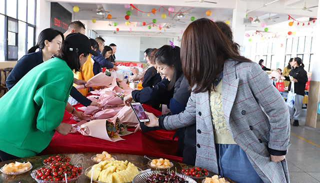 除了專屬禮品和鮮花外,公司還為每一位女神精心準(zhǔn)備了奶茶、蛋糕、水果、小手工零食。滿滿的節(jié)日儀式感讓女同胞們臉上洋溢著幸福的微笑。