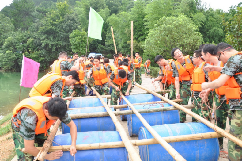 合力造船應該說是這次拓展訓練中能考驗我們團隊協助能力的項目了。教練將我們分為若干個造船小組,根據我們組的任務、圖紙和器材,分工合作共同制作船體。造船的過程中我們看到了我們組織動手能力,人員的分工、船只的搭建,經過1小時的時間,我們的巨艦終于造好了。接下來就要下水去試試它的結實程度了……