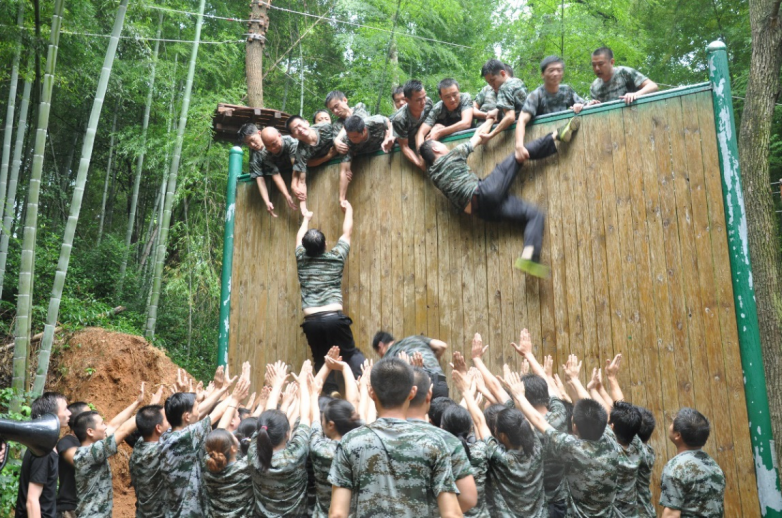 眾志成城的求生墻,公司全體訓練成員都必須在規定的時間內,不得借助任何器具,只能憑借相互間的合作攀上這高高的強頂,有一個人上不去都意味全體失敗。我們已經攀上墻頂的同事用力牽拉,下面的同事紛紛舉起雙臂為攀爬者護航。整個過程中我們團結一致、共渡難關,在同事們加油打氣的熱烈氣氛下,每個人都完成了攀登,挑戰了自我。
