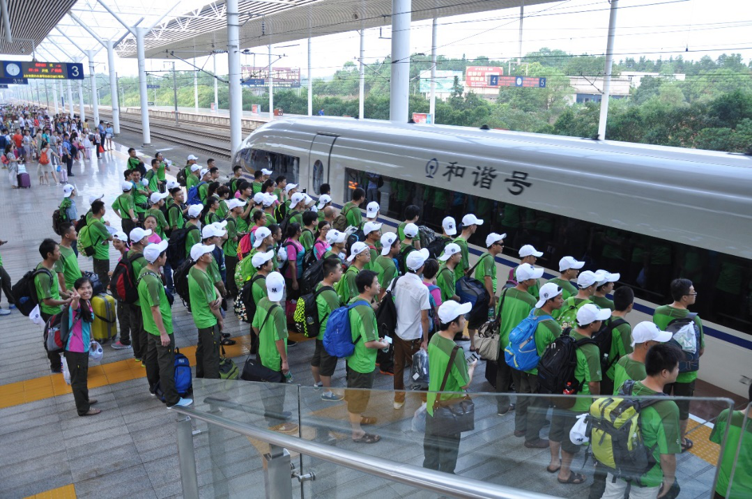員工穿上整齊劃一的綠色團隊文化衫,象征著我們西迪的生命力,充滿希望充滿創造力。我們坐高鐵綠色出行,眼里滿滿的對海陵島美景的憧憬。